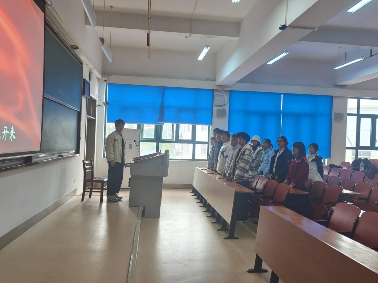 (通讯员 任俊东 摄影 董芊芊)11月23日下午,农林经济管理2401团支部在南附楼202开展以“时代新章,人民至上”为主题的团日活动。活动由任俊东同学主持,以精神为帆领航青春航向,以实践为锚锚定奋斗坐标,让“人民至上”的理念在思想碰撞中扎根,让时代使命在薪火相传中践行。活动在激昂的团歌声中拉开帷幕。同学们身姿挺拔如松,目光坚定似炬,歌声裹挟着青春的赤诚与朝气。