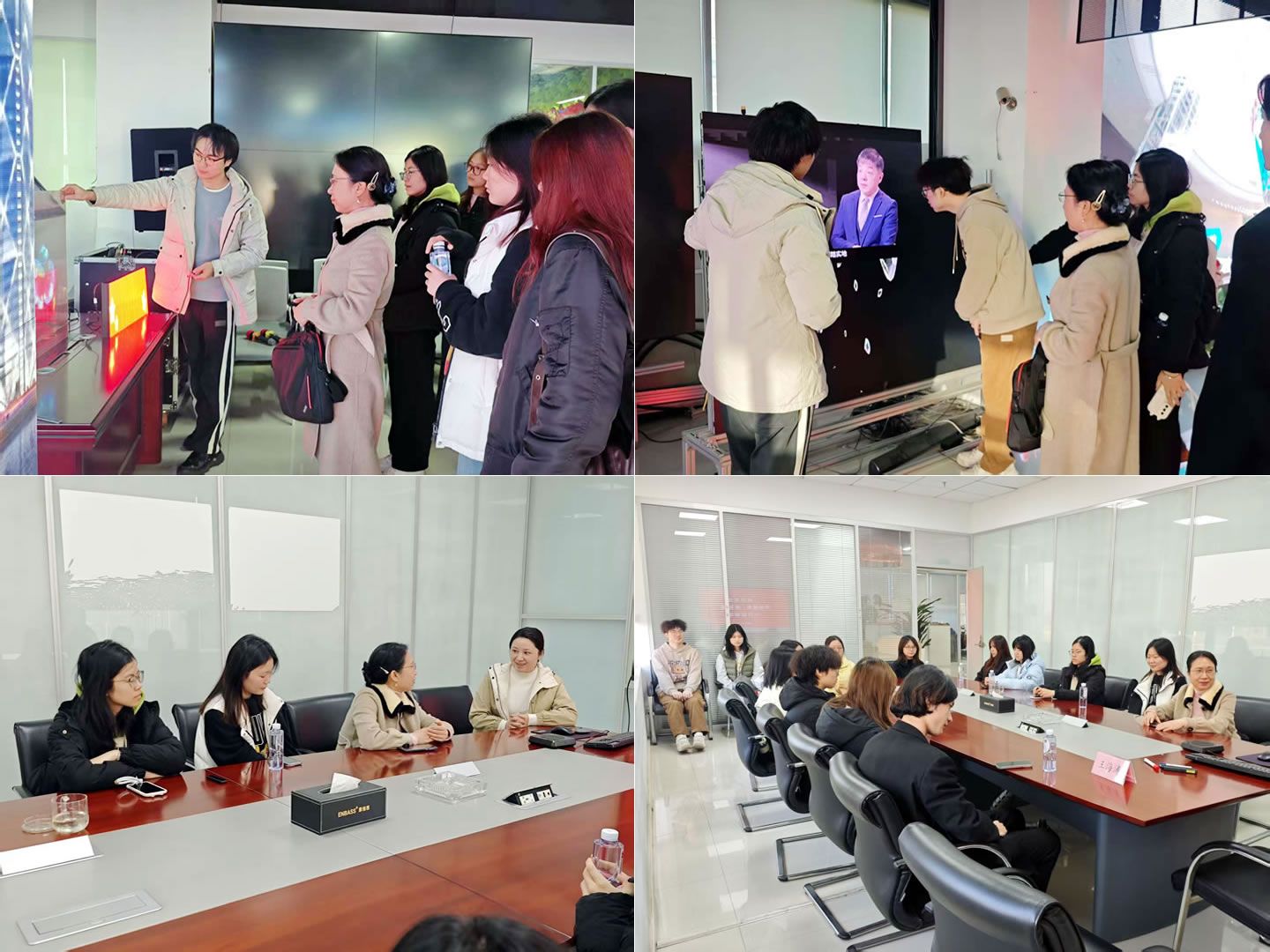 活动伊始,恩倍思科技的引导员小刘带领师生参观了企业DLP无缝拼接屏、LED显示屏、智能触摸一体机等核心电子显示器件,简要介绍产品应用场景,让同学们对企业技术实力形成直观认知