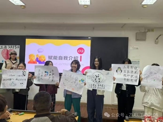 传统自我介绍被“扑克牌分组+独特技能分享”模式取代:同学们不仅介绍姓名、家乡,更分享了“暖心瞬间”“专业期待”等个性化内容——有人讲述对工商管理专业的热爱,有人分享入学后的温暖小事,真挚的表达让信任与共鸣在掌声中滋生。