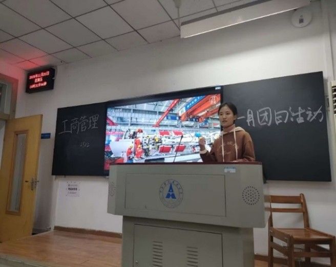 随后活动便进入三大主题的学习环节。在中华民族伟大复兴的历史进程下,体育强国建设刻不容缓。在今年11月9日到21日,中华人民共和国第十五届运动会在粤港澳三地举行。工商2502团支部以全运会为纽带,从毛主席的体育情怀到全运会,结合现实生活中的大运会和乐跑开展活动。其中杨欢同学生动地向大家介绍了四位杰出运动员,同时邀请大家讲述自己在运动会和乐跑期间的感悟,激发了同学们对体育的进一步思考和对强身健体的热情。