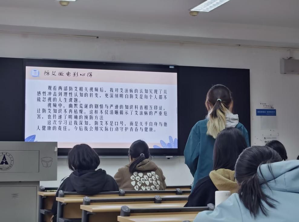 随后,同学们共同观看防艾科普微电影,并分享观后感想。在此过程中,大家养成了对艾滋病的警觉意识,强化了对艾滋病相关知识的体系构建,将感性认知与理性思考深度融合,进一步巩固了学习成果。