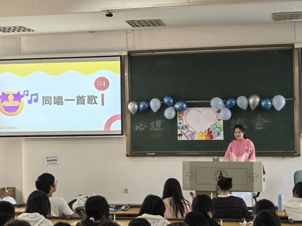 活动第四项,来到大家期盼已久的“同唱一首歌”环节。根据同学们的投票结果,心理委员张雨萱同学宣布我们的班歌—《我的未来式》。在班委的带头下,同学们齐唱班歌。此时,思想的火花悄然碰撞,集体的誓言铮铮回响,这是旋律的流淌,是情感的奔涌,是班级的吟唱,是集体的和鸣。此刻,音律之下,声浪之中,是我们集体灵魂的独特频率。
