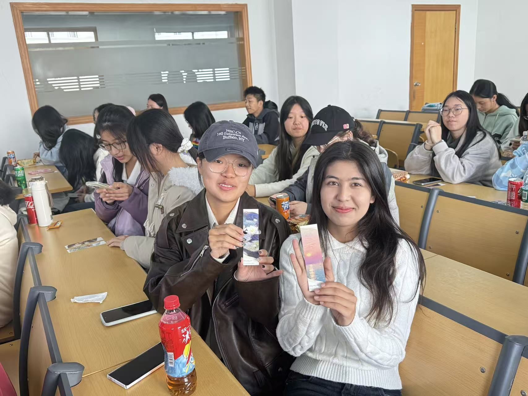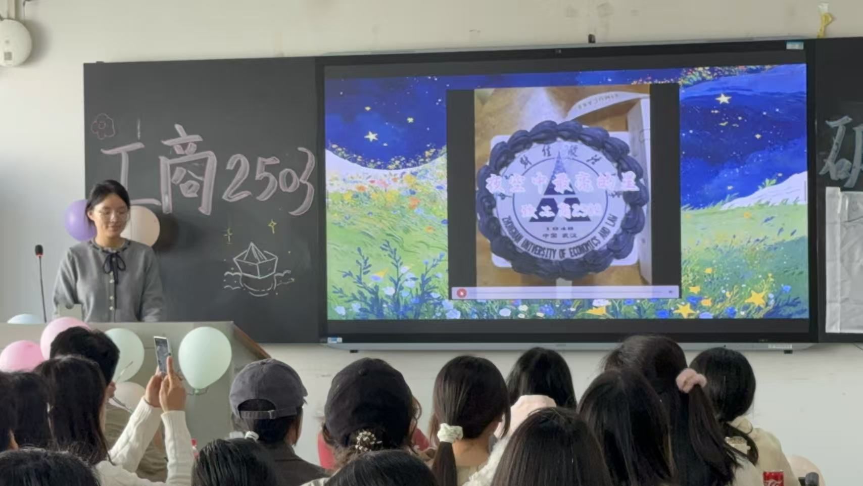 活动未始,情意已至。班会前夕,班委们便将手写的邀请函,如一枚枚载着诚意的羽毛,送至每一位同学、辅导员与学姐的手中。他们更提前潜入活动现场,以缤纷的气球、创意十足的海报与板报,将寻常教室点缀成温暖的“心灵港湾”,静候每一位家人的到来。