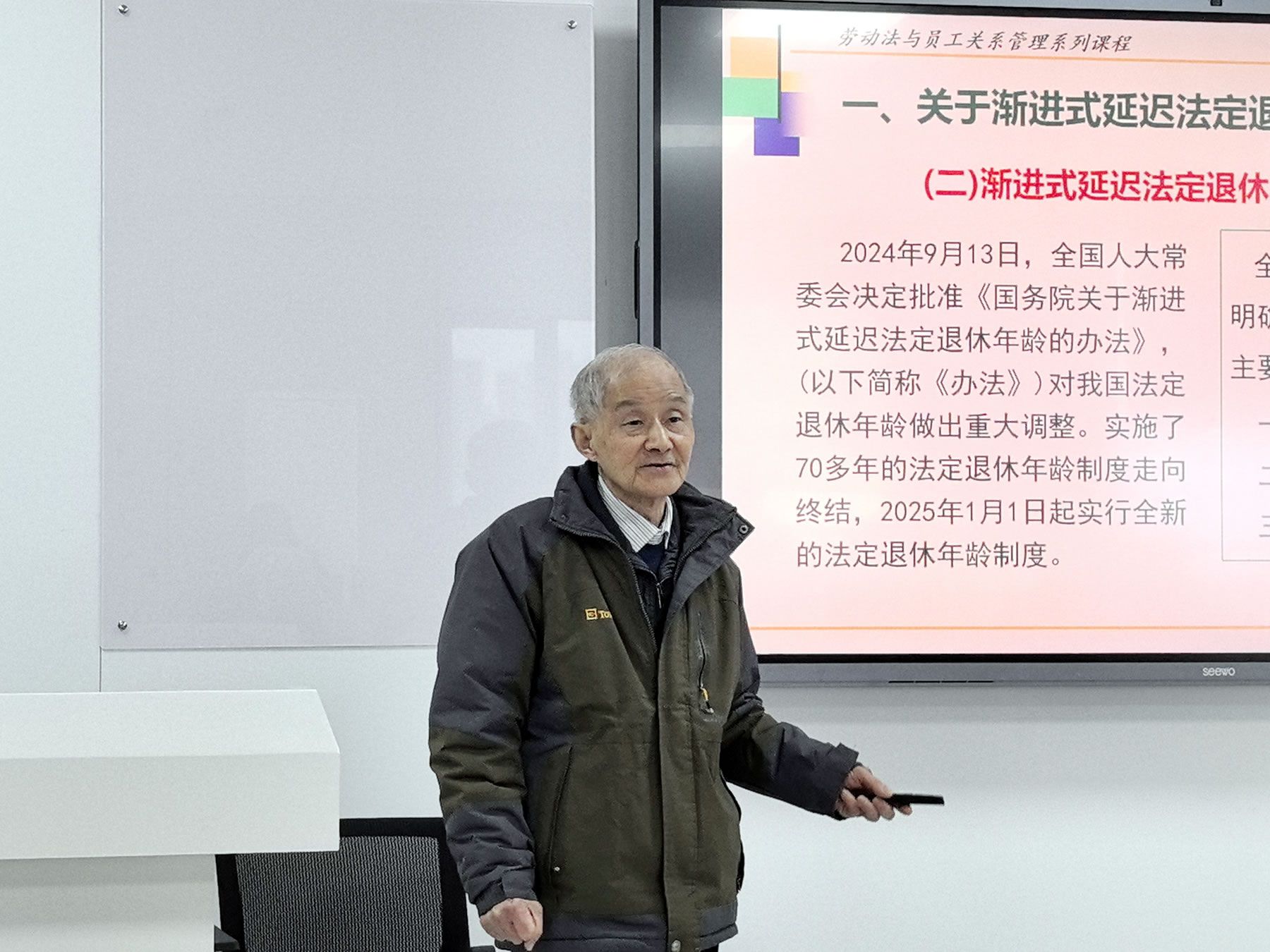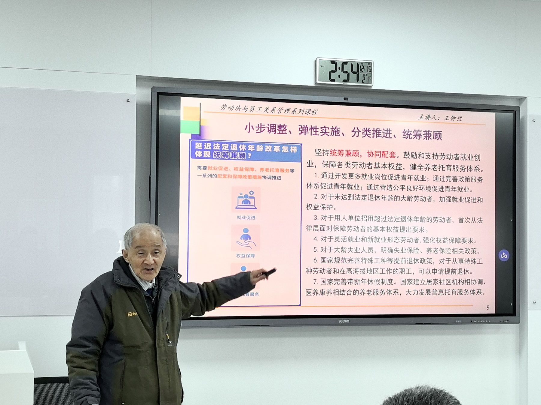 (通讯员 谭逸萌)为精准聚焦国家渐进式延迟退休新政要义与实务影响,助力学院师生把握前沿政策趋势、优化学科知识结构,2025年12月15日下午2:30,由人力资源管理系、中南大人才开发与组织发展研究中心联合主办的“延迟退休与超龄劳动者基本权益保障法规政策解读”专题讲座在文瀚楼东601会议室成功举行。本次讲座特邀高级经济师王钟钦担任主讲嘉宾,人力资源管理系赵琛徽教授主持。熊卫副院长、郑耀洲副教授及三十余位硕博研究生到场交流与聆听,氛围浓厚。