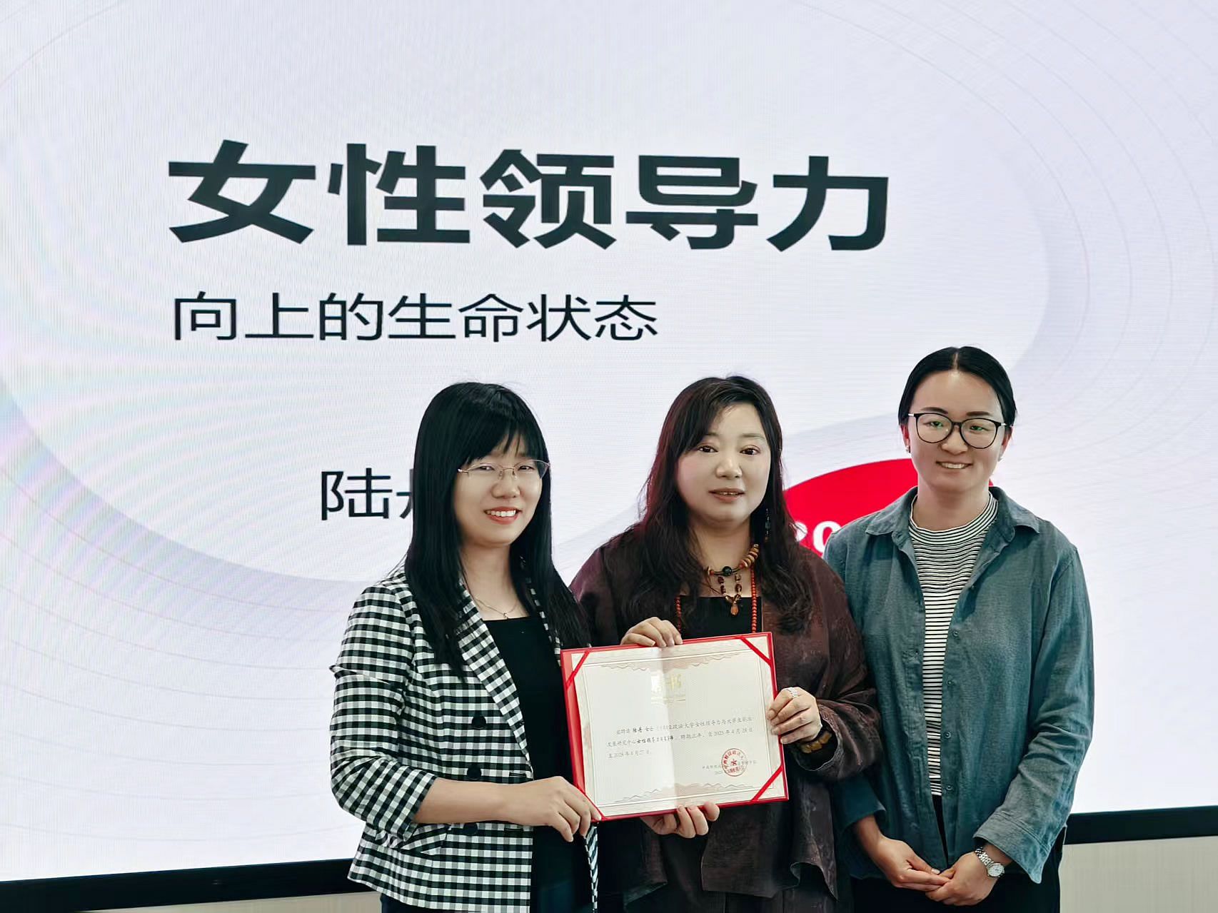 活动最后,工商管理学院党委朱艳平副书记为陆丹校友颁发“女性领导力成长导师”聘书,希望陆丹校友能持续为母院赋能,助力更多学生提升女性领导力素养和职业技能。本次“她智汇”讲座中在场师生与陆丹校友积极互动,学习了很多职场干货也感受到了创业之路的艰辛。陆丹校友的分享让同学们感受到女性的坚韧与力量同样能在职场上大放异彩,同学们明白了女性领导力不仅是专业能力的体现,更是一种支撑自身的坚定力量;并表示在未来的职业发展中,会勇于突破自我,让女性力量在职场中绽放耀眼的光芒。