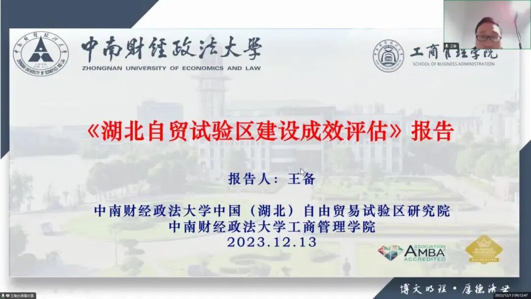 2023年12月13日,湖北省商务厅(省自贸办)制度创新处委托专家组对我院承担的“湖北自贸试验区建设成效评估”课题进行了项目结题评审,评审会以视频连线形式召开。