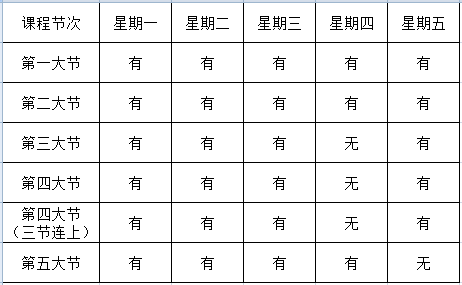 13:05——13:15——13:35(去上第三大节课)(星期四无)