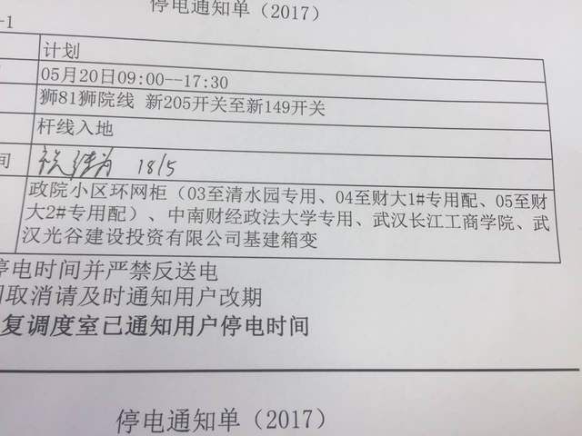 5月20日9:00至17:30,因狮院线高压杆线入地,西区十食堂、及学生宿舍上述时间无法供电,请西区师生做好做好停电准备工作。