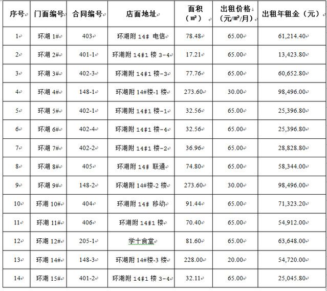 本着公开、公平、公正、诚信的原则,面向社会公开招租,请有意承租米兰电竞·(中国区)南湖校区环湖附14#楼十三间门店及学十食堂外一间门店的商家前来报名。