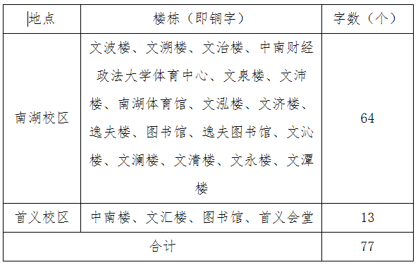 (一)两校区所有楼栋铜字清洗服务:对两校区所有楼栋的铜字进行清洗服务,具体范围如下: