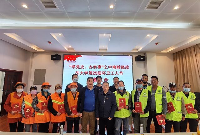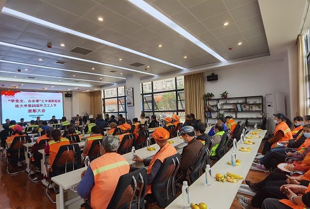 奋斗百年路 启航新征程。习近平总书记指出:“劳动最光荣、劳动最崇高、劳动最伟大、劳动最美丽,劳动是一切幸福的源泉”。10月26日恰逢武汉市第25届环卫工人节,为大力弘扬环卫工作者的无私奉献精神,营造尊重、理解和支持环卫工人劳动的浓郁氛围,在中国共产党建党一百周年之际,后勤保障部在多功能会议室组织开展环卫工人节表彰活动。活动由后勤保障部绿化环卫服务中心主任葛洪国主持,后勤保障部副部长刘进明出席了本次表彰活动。