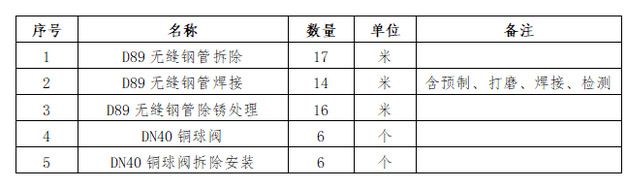 (五)工期和质保期:在签订合同后30个工作日内完成项目施工;项目质保期为2年,如维修更换的管道和球阀在质保期出现问题,免费进行维修更换。