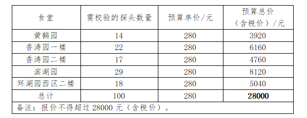 (三)项目要求:对黄鹤园、香涛园、滨湖园和环湖园西区二楼食堂天然气报警器探头进行校验,确保校验后符合相关燃气报警器使用规范标准及安全标准;
