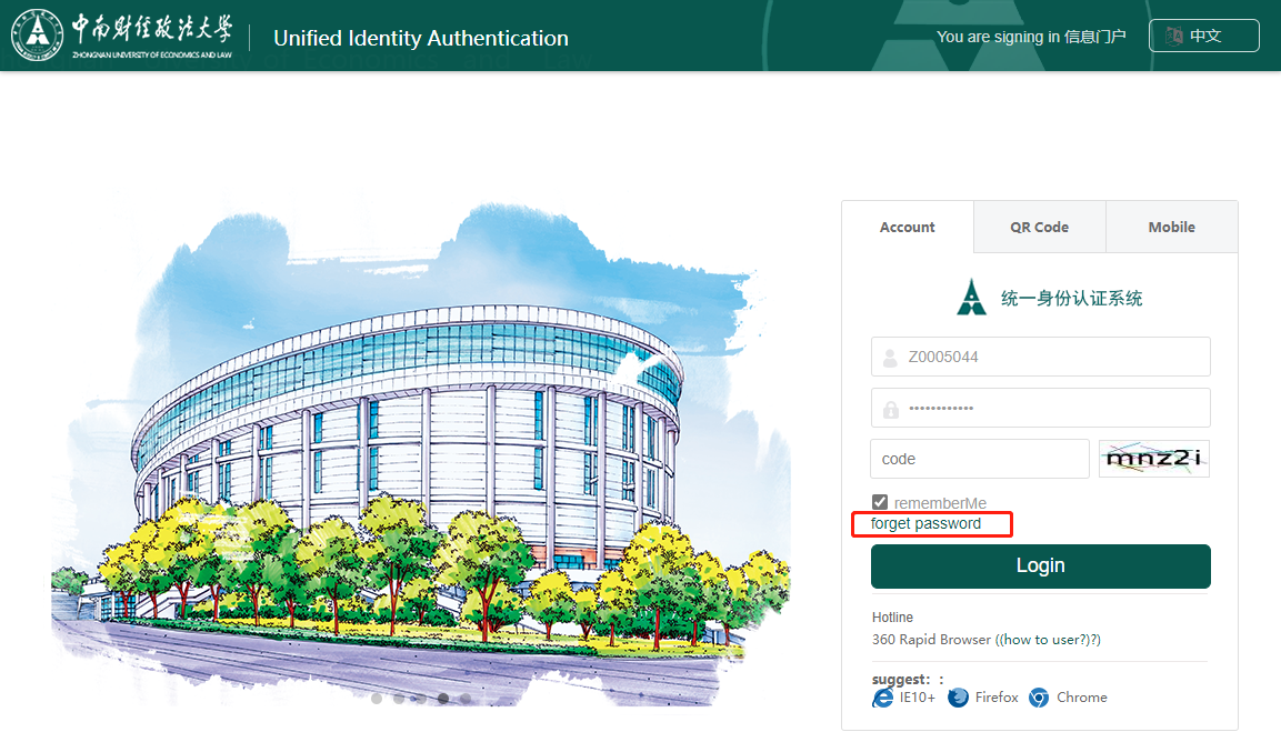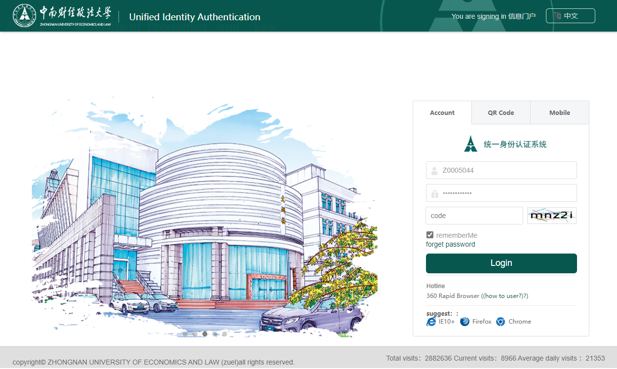 Login Link: http://ids.zuel.edu.cn/authserver/login?service=http%3A%2F%2Fi.zuel.edu.cn%2Ftp_up%2F&locale=en