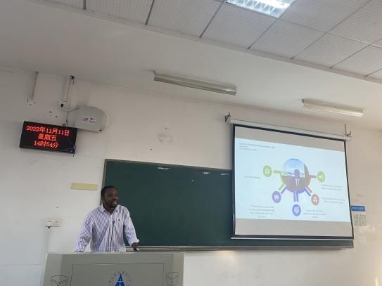 ABOAGYEEMMANUEL MENSAH, President of CCPC, Vice President, Li Anqi, LI ZHAODEIVID and Jin Chenxuan introduced the functional structure and dailyactivities of CCPC. Afterwards, Li Xinyi, head of the SecretaryDepartment, Yang Yuhan, head of the Publicity Department, Melyem,head of the Academic Department, and Huang Qinyu, head of the Cultureand Sports Department, introduced the work content, activities andmembers of their respective departments.