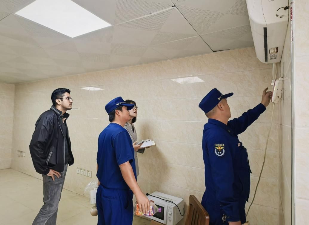 November 9, 2024 is China's 33rd National Fire Prevention Day, and this year's fire safety theme is "Fire protection for all, life first". In order to further strengthen the safety management of international student dormitories, eliminate all kinds of safety risks, improve the safety awareness of international students and the ability to prevent and save themselves, and create a healthy, harmonious, clean and safe learning and living environment, the joint security Department of International Education School carried out a special fire safety and health inspection on No.10 and No.15 international student dormitories on the afternoon of November 8.