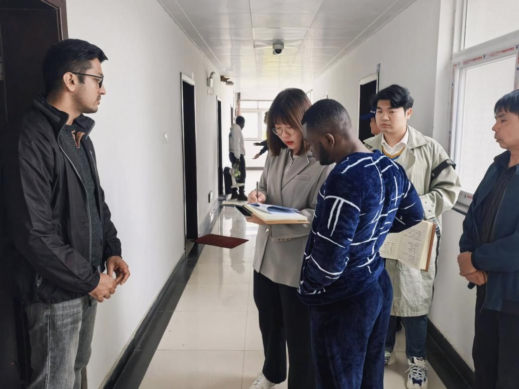 In the process of inspection, the international student counselors took this as an opportunity to "grow together" under the "same field", learn the knowledge of fire self-prevention and self-rescue together with the students, and conduct face-to-face communication with the students on dormitory hygiene, fire safety and life adaptation, and give timely guidance and help.