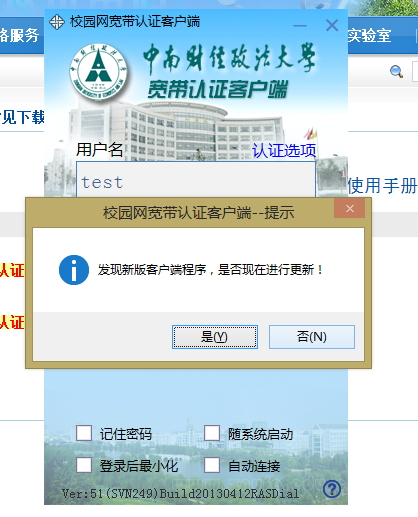 After updating, the application will operate again automatic, please Input the username(Chinese:用户名)and password(Chinese:密码)to log in again.