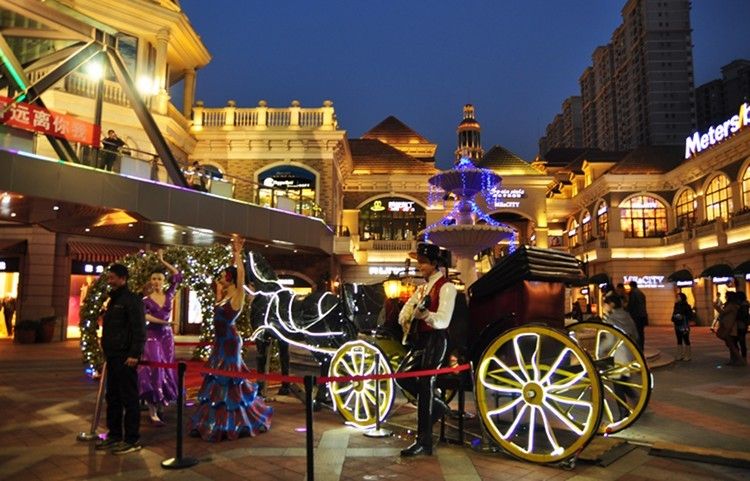 The whole street is made up of four building complex, from west to the east, there are American-like modern building, warmly Spain architecture and the innocent Northern European malls, as well as the classic England design. Adopting the essence of the buildings in all over the countries, buildings here are representatives of buildings in the world, integrating advertise, ment, pillar decoration and brand of stores as a whole. Visitors and customers will experience a feeling of crossing-borders, as if they have never finished their shopping tour.