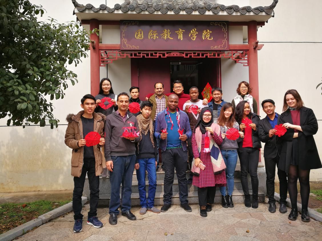 来自东南亚、欧洲、非洲的二十余名留学生,在对外汉语教研室李木子老师和危艳丽老师的带领下动手尝试剪纸,亲身体验了中国的节日习俗。