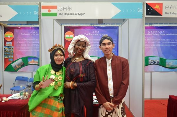 在舞台表演进行的同时,台下各展位的展览活动也已如火如荼的展开。本次展示共有40个团队参加,其中中国学生团队24个,留学生团队16个,共涵盖33个国家和地区人文风情。各个展位的同学都精心准备,用各种独具特色的方式展现本展位的文化主题。