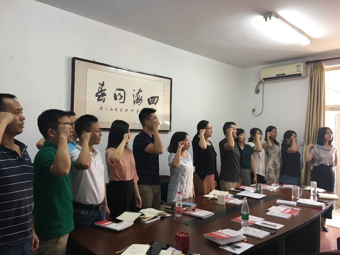 首先全体党员在刘建明书记的带领下重温了入党誓词,并集体诵读了《中国共产党章程》第十一章—党徽党旗。