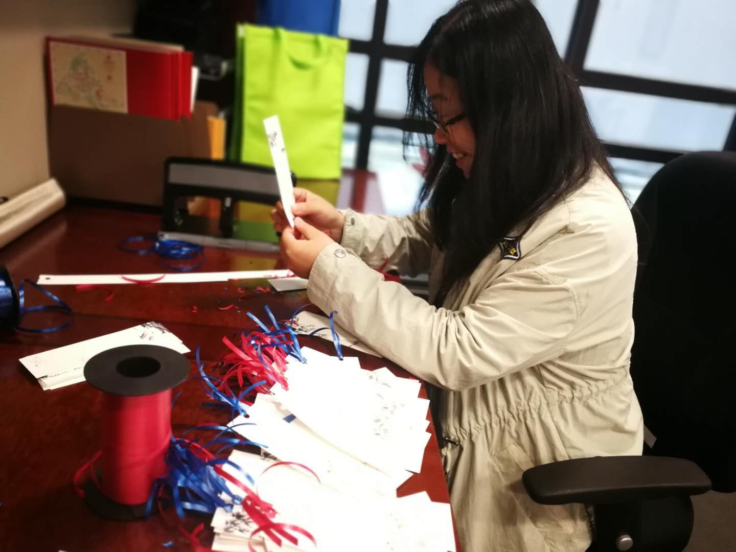 为了筹备此次龙舟节文化活动,在石溪大学副校长、石溪孔院外方院长刘骏博士的指导下,石溪大学孔院的四位老师和学生志愿者提前一周就开始了紧锣密鼓的准备工作。下图为孔院教师精心设计、手工制作了精美的书签,供龙舟节书法展示使用。