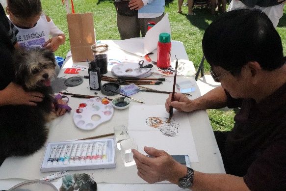 前来求字画的客人络绎不绝。有两位小姐妹抱着心爱的小狗恳请赵老师为它画一幅肖像。生平第一次做模特的小狗似乎明白了自己的任务,乖乖地趴在桌上,一动不动。