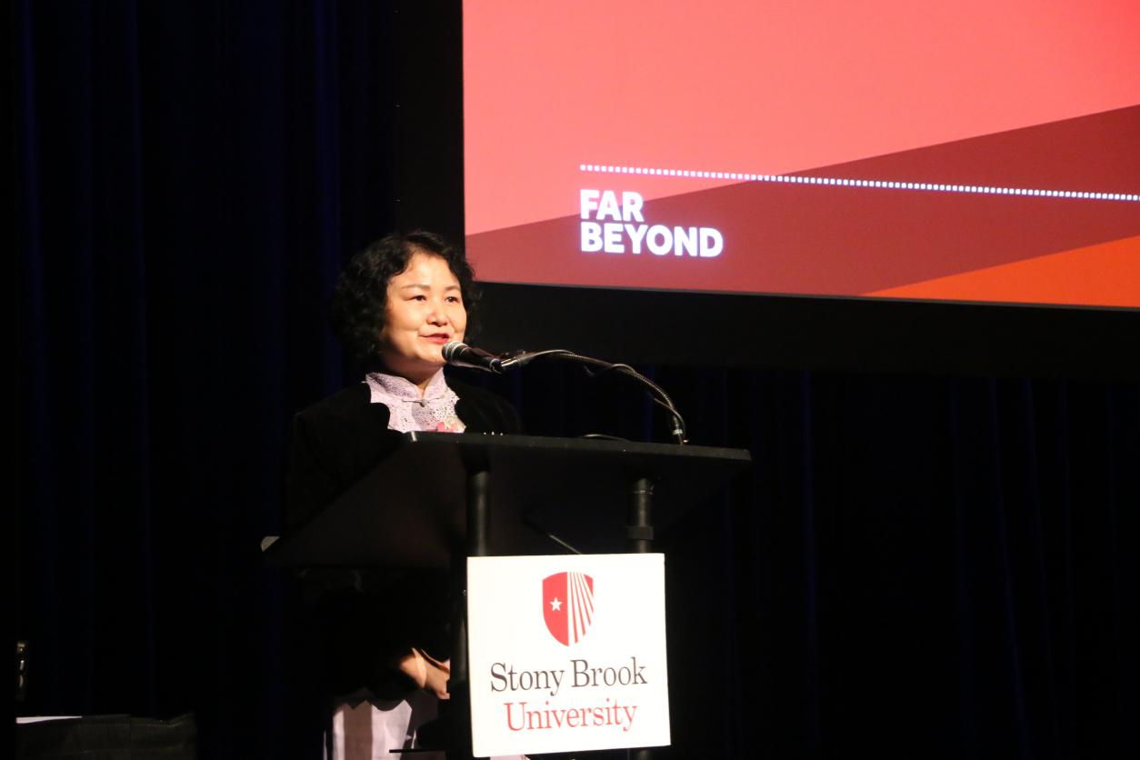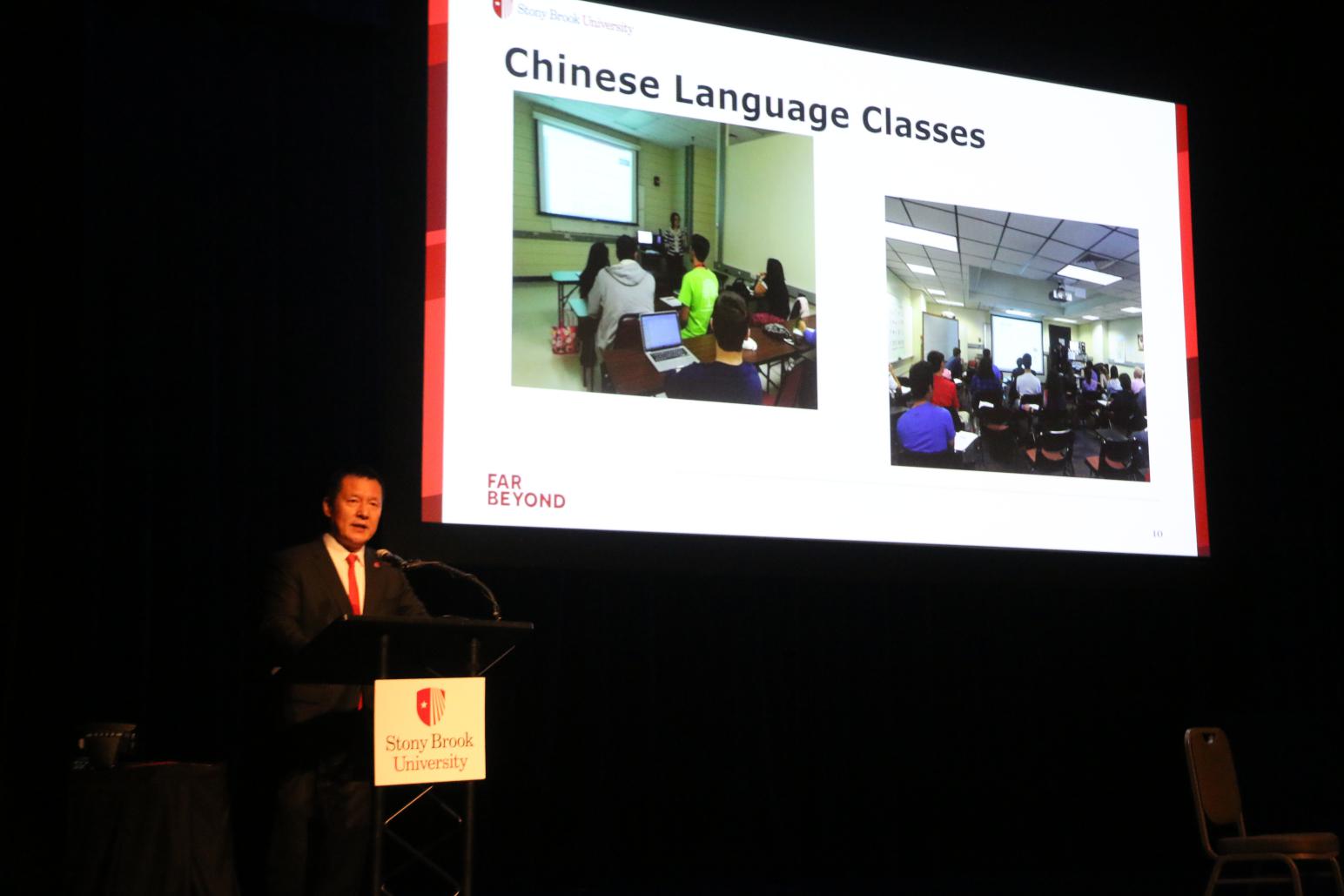 石溪大学校长斯坦利(Samuel Stanley)教授、副校长刘骏教授、中国驻纽约使领馆杨军教育参赞、王文华领事、孔子学院中方院长谢群教授、孔子学院及中国中心全体教职员工、石溪大学及社区数百名中国文化爱好者参加了本次庆典活动。