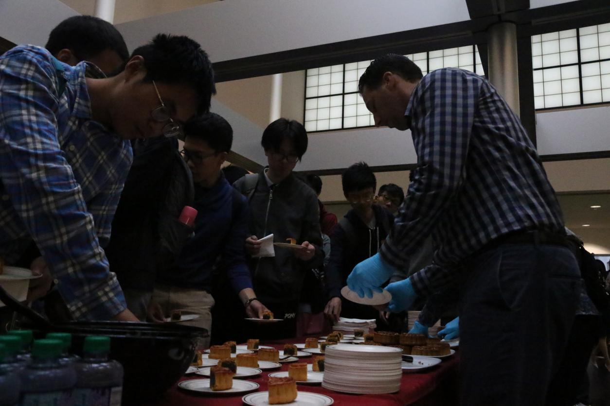 最具人气的当属中秋传统美食,孔子学院特地准备了月饼,邀请来宾们免费品尝。