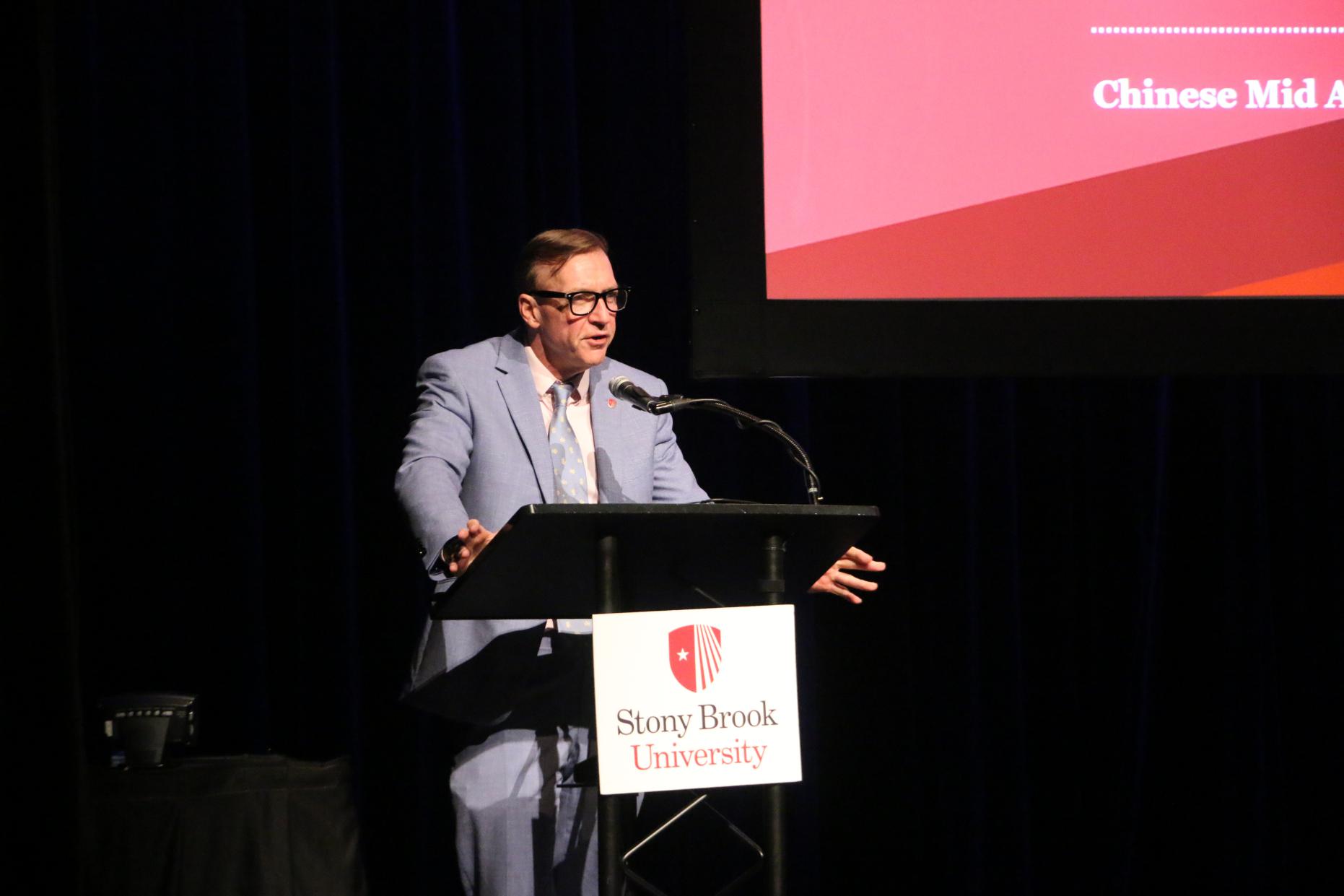 庆典仪式上,石溪大学校长斯坦利博士热情致辞,他逐一介绍了莅临庆典活动的嘉宾,表示非常荣幸能与所有来宾共度中秋佳节;全世界不同民族关于月圆时分有不同形式的庆祝活动,而孔子学院举办的这场庆典盛宴极具特色和意义。斯坦利校长还表示,希望石溪大学这个温暖的大家庭能为远道而来的朋友们带来宾至如归的感受,并祝大家度过一个美好的中秋之夜。