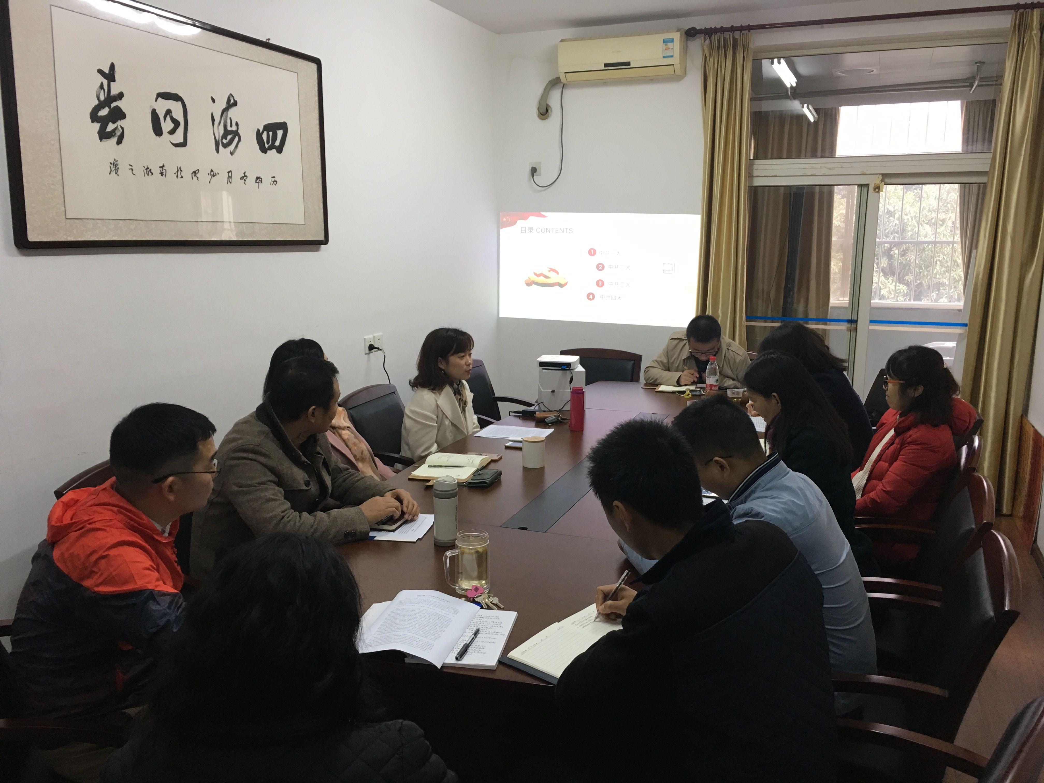 11月15日下午2点, 国际教育学院党支部全体党员于会议室209开展了《中国共产党历次全国代表大会内容及意义》专题党课学习,此次党课由郑影副院长主讲。