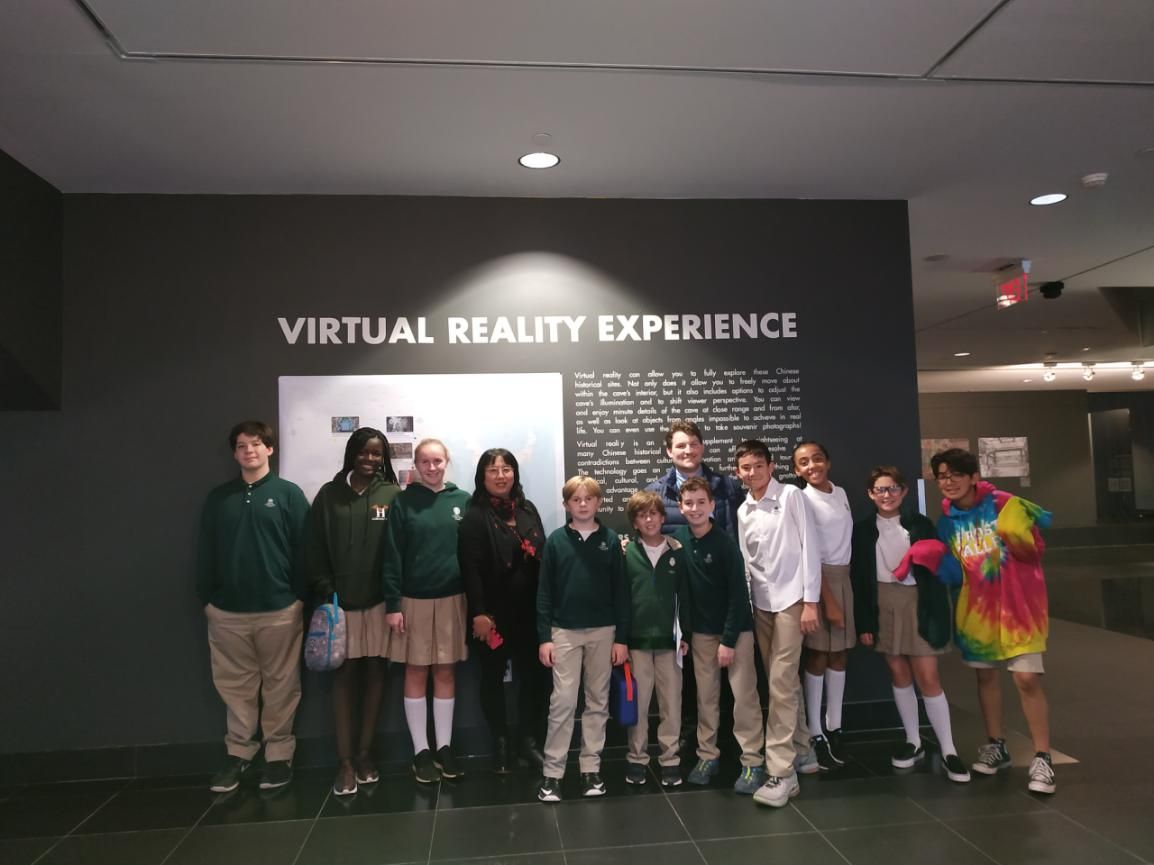 11月7日,长岛海港小学组织四年级和五年级的13名学生来到王嘉廉中心观看展览。孔子学院谢群院长和长岛海港小学黎红老师向孩子们介绍了中国的五大佛教遗址和相关文化背景。戴上VR眼镜,身临其境的体验和强烈的视觉冲击立刻让孩子们兴奋得手舞足蹈。