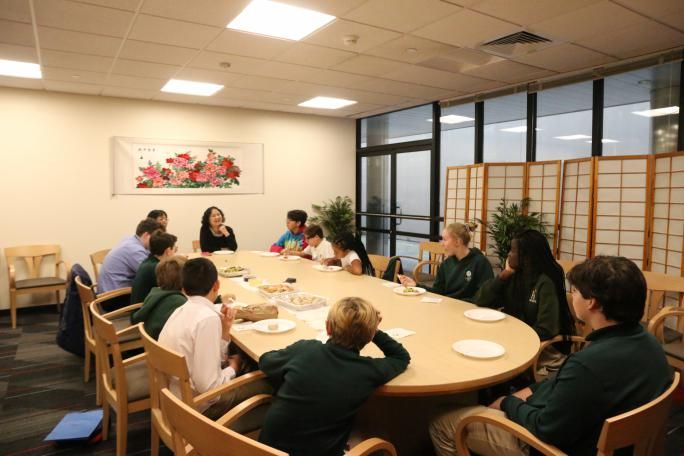 石溪中文学校学生品尝中国餐点并座谈