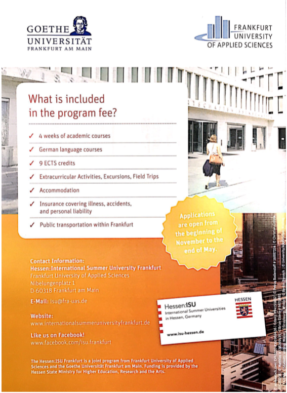 详情请见:www.internationalsummeruniversityfrankfurt.de