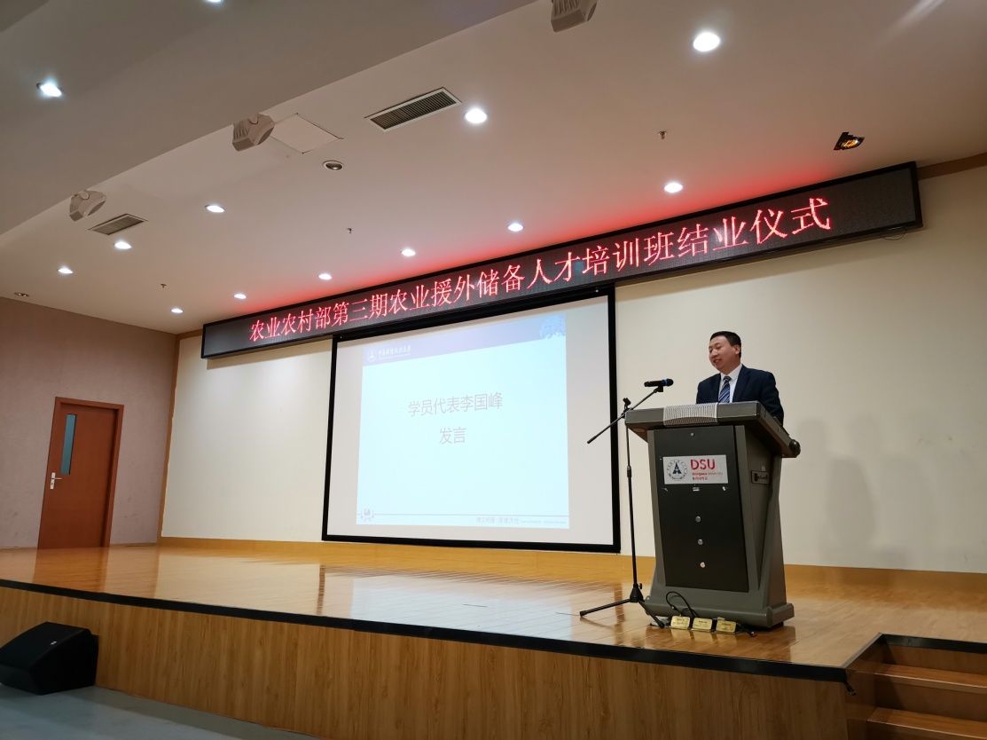 学员代表李国峰在发言中,从三个维度回顾了一个月来在我校培训的点点滴滴,感谢老师们付出的辛勤劳动,并代表全体学员立志做好援外工作。