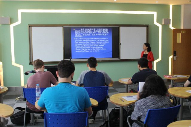 在中国文化的介绍中,则结合学校所在地的荆楚文化特色和文化实践考察活动的历史文化背景,以专题讲座的方式向夏令营同学们介绍了中国传统文化、历史、地理以及现阶段经济发展状况等内容,同时结合学生的兴趣设置了中国传统节日、中国饮食文化、中国书法、太极等体验项目。