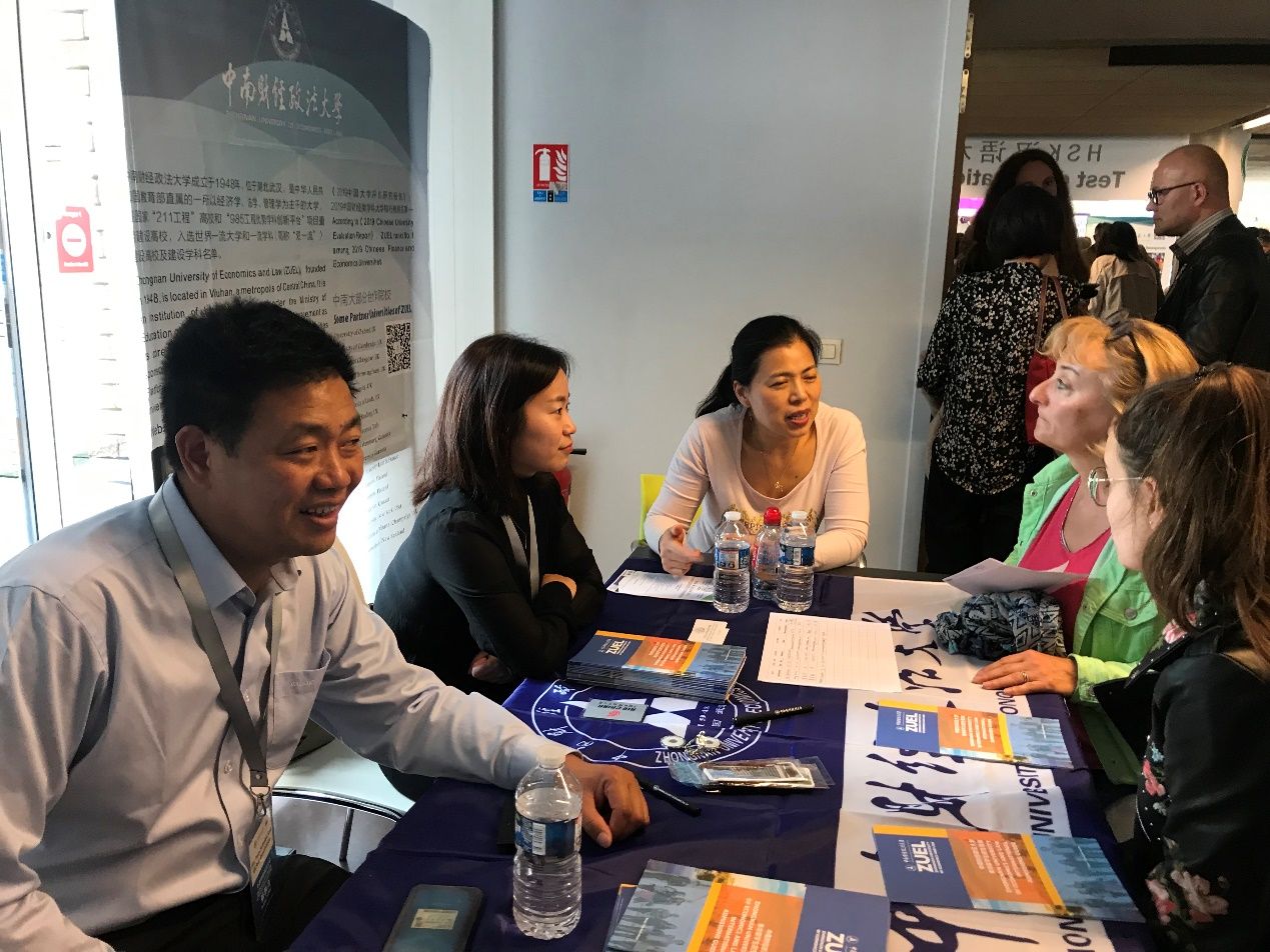 展会期间,来我校展台咨询的法国学生及家长络绎不绝,张院长、郑院长和展会志愿者催老师就学校背景、优势学科、录取条件、奖学金政策及学费住宿等为咨询者进行了详细耐心的解答,并留下其联系方式,便于更好的进行宣传推送。