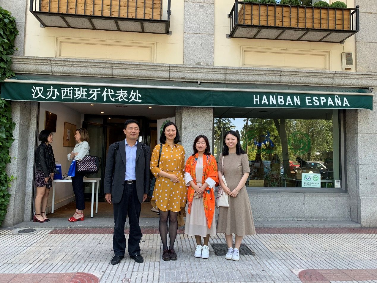 6月14日,代表团访问了国家汉办/汉考国际驻西班牙汉代表处。代表处王小令女士向代表团介绍了西班牙办事处的基本情况,西班牙汉语考试委员会成立于2014年,主要职能是进行汉语推广,组织在西班牙组织汉语考试,同时进行汉语教师的引进和培训工作等。王小令女士表示愿意协助中国大学在西班牙开展交流活动,我校郑院长询问了西班牙学生赴中国参加暑期夏令营情况,并介绍了我校现有的汉语暑期夏令营运行模式,双方表示可进一步沟通,并愿意协助我校暑期夏令营在西班牙的组织及推广。
