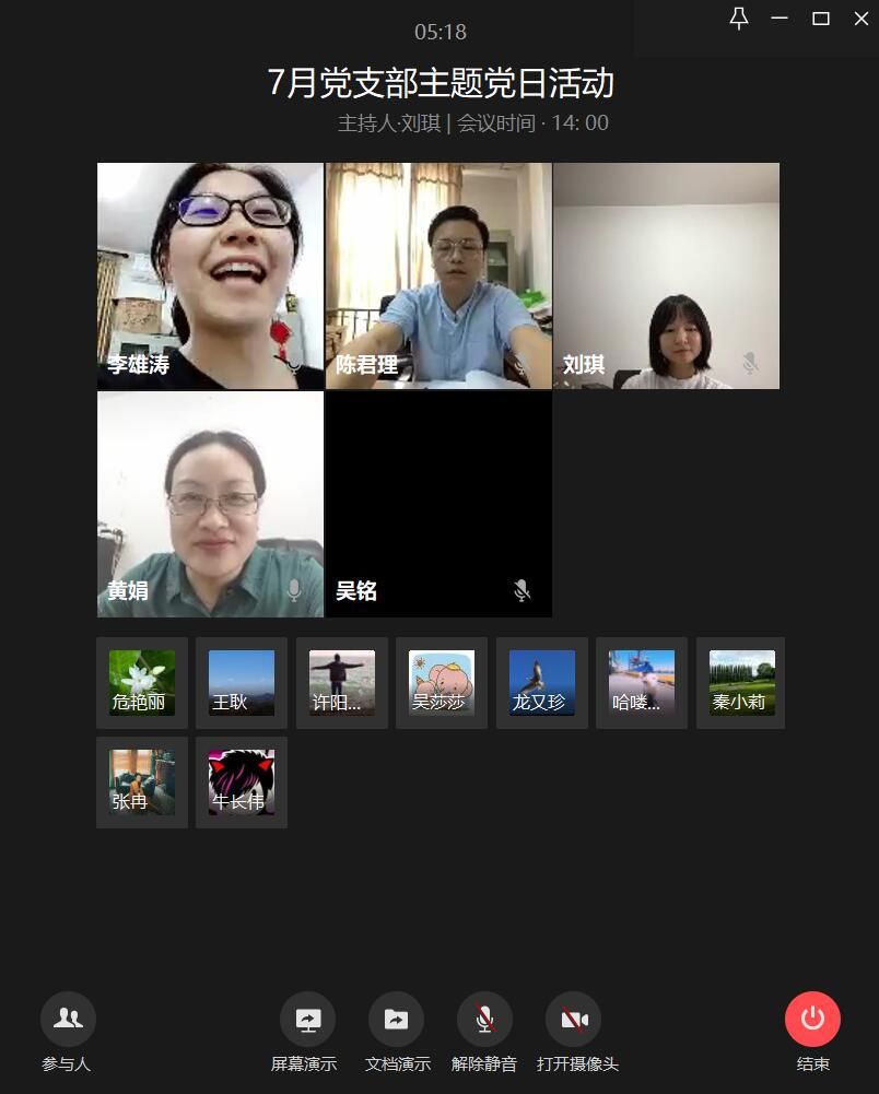 2020年7月16日下午两点,我院教工党支部通过企业微信会议线上学习的形式开展了七月份支部主题党日活动。此次主题党日活动的主题为“同上战疫‘微党课’,共筑红色防火墙”,由支部书记黄娟同志主持。