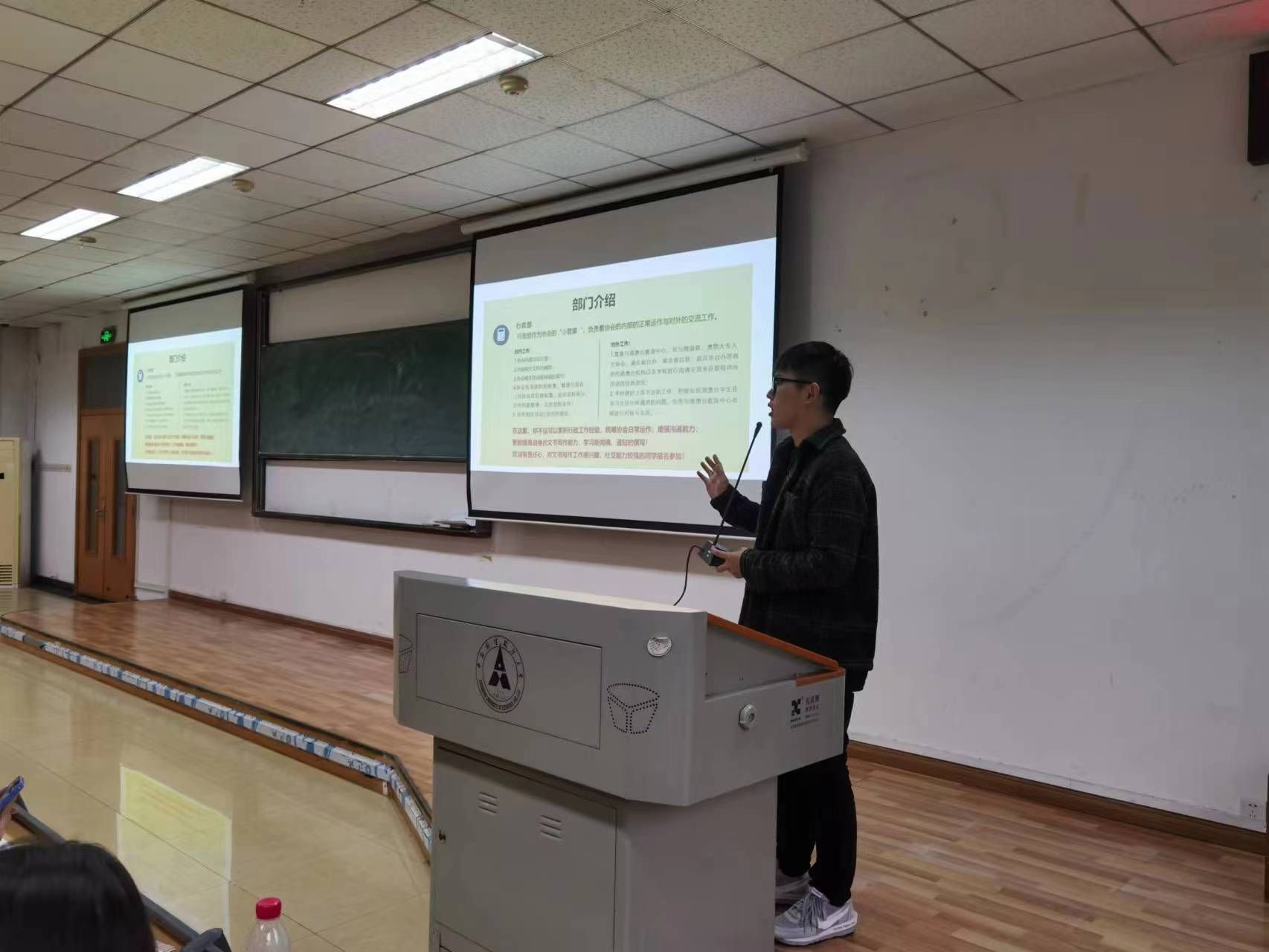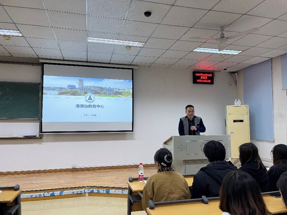 接下来,海峡两岸暨港澳地区文化交流协会成员与同学们见面并进行了招新宣讲。港澳台学生专职辅导员徐家桐向新生讲解了学习、国情教育、规章制度、社会实践等方面的信息。