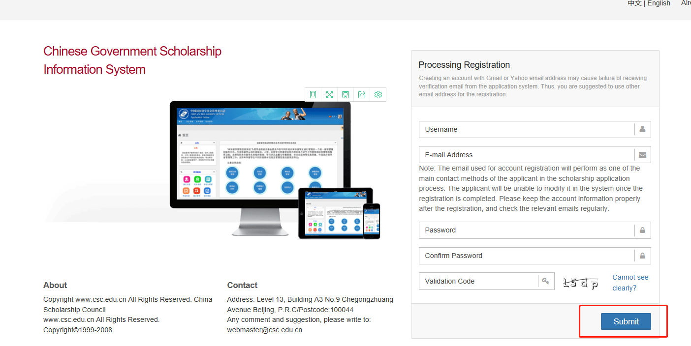 第2步:根据要求填写邮箱信息和密码后,点击提交。