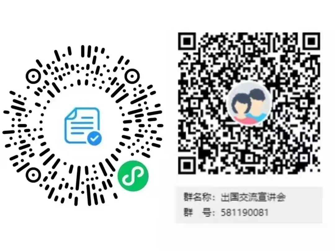 扫描二维码报名并加入本次出国学习宣讲会QQ群,更多信息可关注国际教育学院公众号查看相关通知。