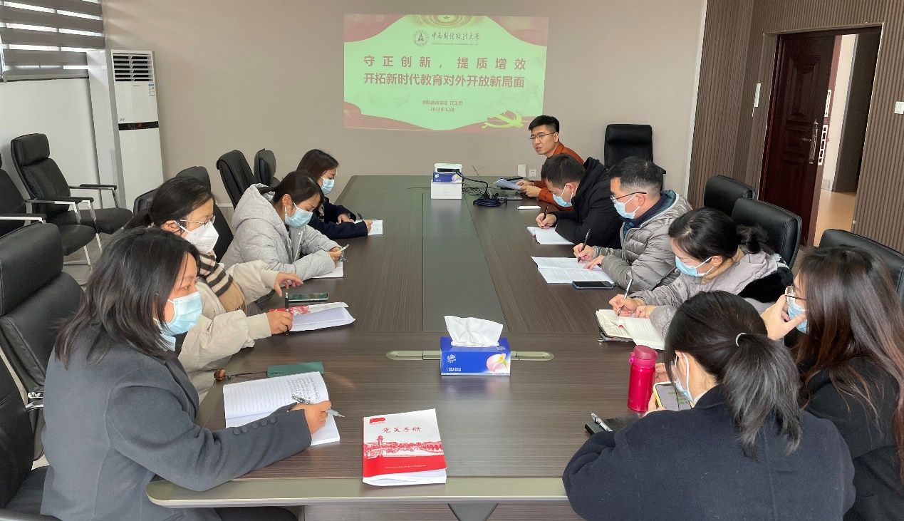 2022年12月8日下午,国际教育学院副院长汪正君同志为学院全体党员主讲了“守正创新,提质增效,开拓新时代教育对外开放新局面”主题党课。