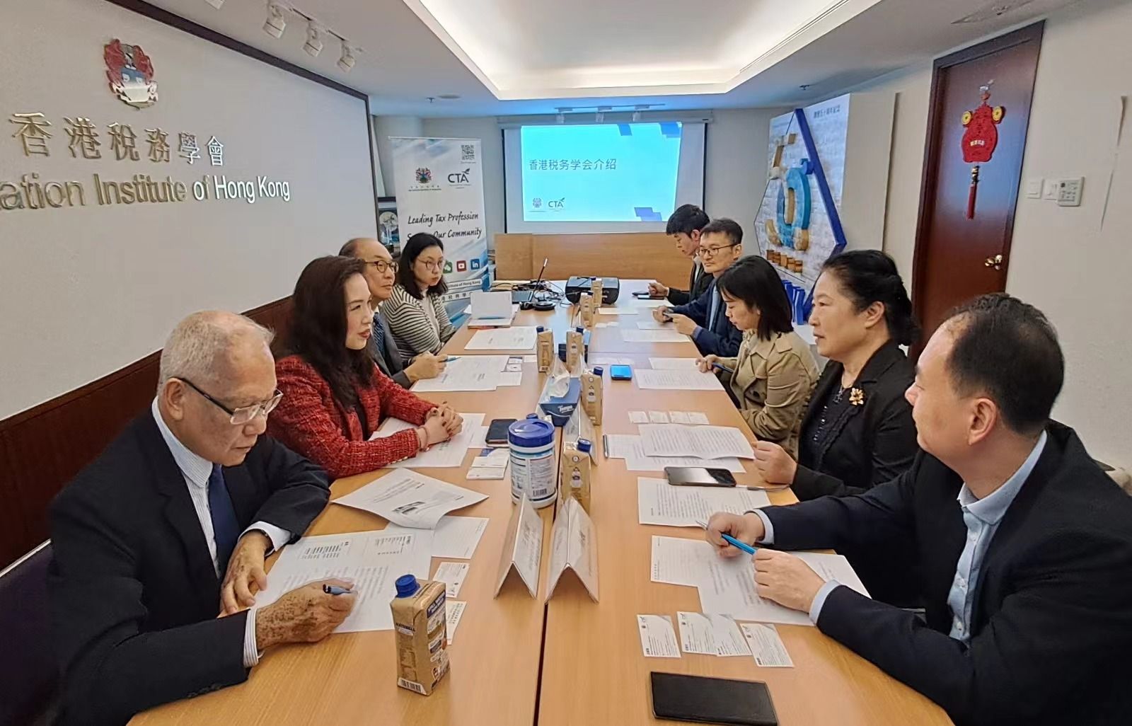 在访问香港税务协会期间,姚莉副校长与香港税务协会副会长石詠文、顾问委员会主席王锐强和专业资格考试委员会主席黄镇南先生进行了交流。石詠文副会长介绍了协会组织结构、主要职能、培训机制,姚莉副校长介绍了学校基本情况、学科特色及对外交流等,周巍部长介绍了财税学院基本情况。随后,双方就合作可能性进行了探讨,达成初步意向。