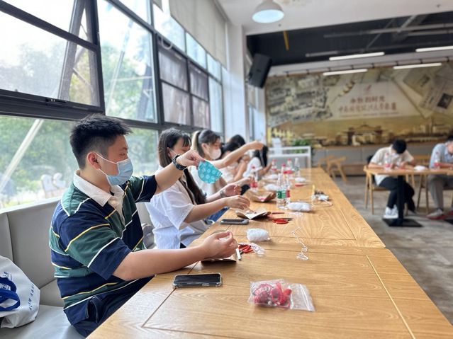 端午佳节刚过,节日气氛犹存。当天下午,鄂台青年学子共同体验了端午特色活动,品尝端午特色点心,制作香包活动。国际教育学院李木子老师从节日文字出发,生动演绎了端午节的传统文化由来。随后,布艺堆秀非遗传承老师向同学们教授如何制作香囊。通过自己亲手制作香包,两岸学子们深入体验端午节的民俗传统和文化内涵。