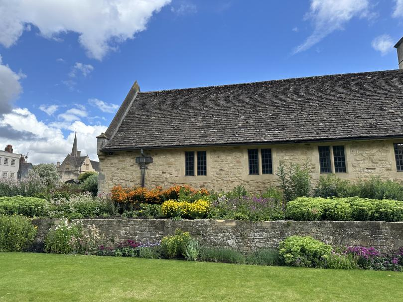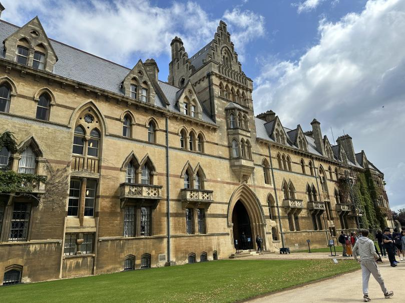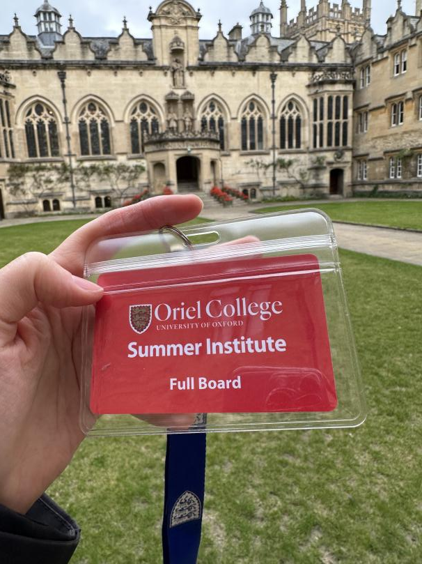 7月16日,牛津大学奥利尔学院的志愿者带着我们乘坐大巴车从希斯罗机场前往牛津郡。沿途的风景如诗如画,我已经迫不及待迎接接下来两周的牛津生活了~牛津是一座古老而有韵味的城市,小镇的每一座建筑都庄严神秘,被蔚蓝的天空衬托得更加精美。推开奥利尔学院的大门,映入眼帘的是一座优雅小巧的庭院。我在Dining Hall办理了报到手续,并领取了属于自己的学生卡和印着logo的帆布包,之后每天我将和我的小伙伴们在这里用餐,属于我的牛津之旅正式开启啦!