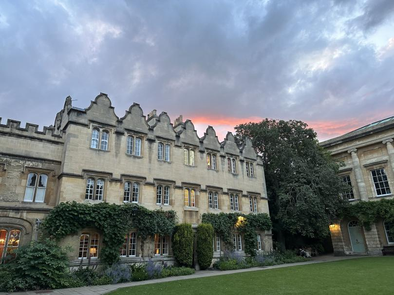 Welcome Reception给这个项目增添了满满的仪式感,大家都盛装出席,在美丽的庭院中举着香槟交谈甚欢。这可是个交朋友的好机会,在宴会上我认识了许多优秀的小伙伴,大家来自不同国家、不同学校,学习着不同的专业,但相同的是,奥利尔学院的暑期项目将我们聚集在了这里,这可真是奇妙的相遇~