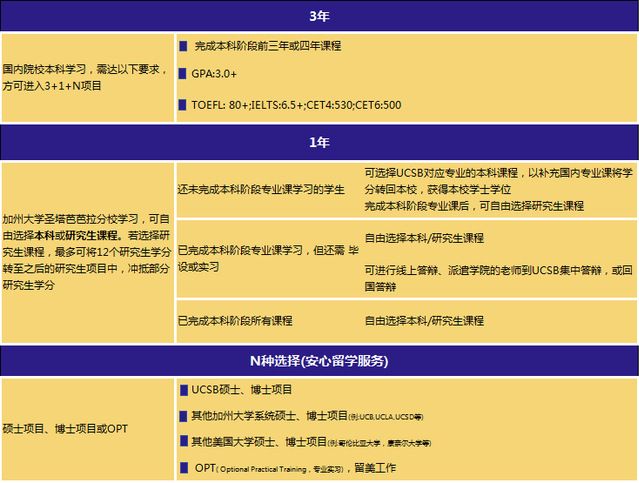 3年中南大本科学习+1年加州大学圣塔芭芭拉分校学习+N年硕博、直博或OPT阶段