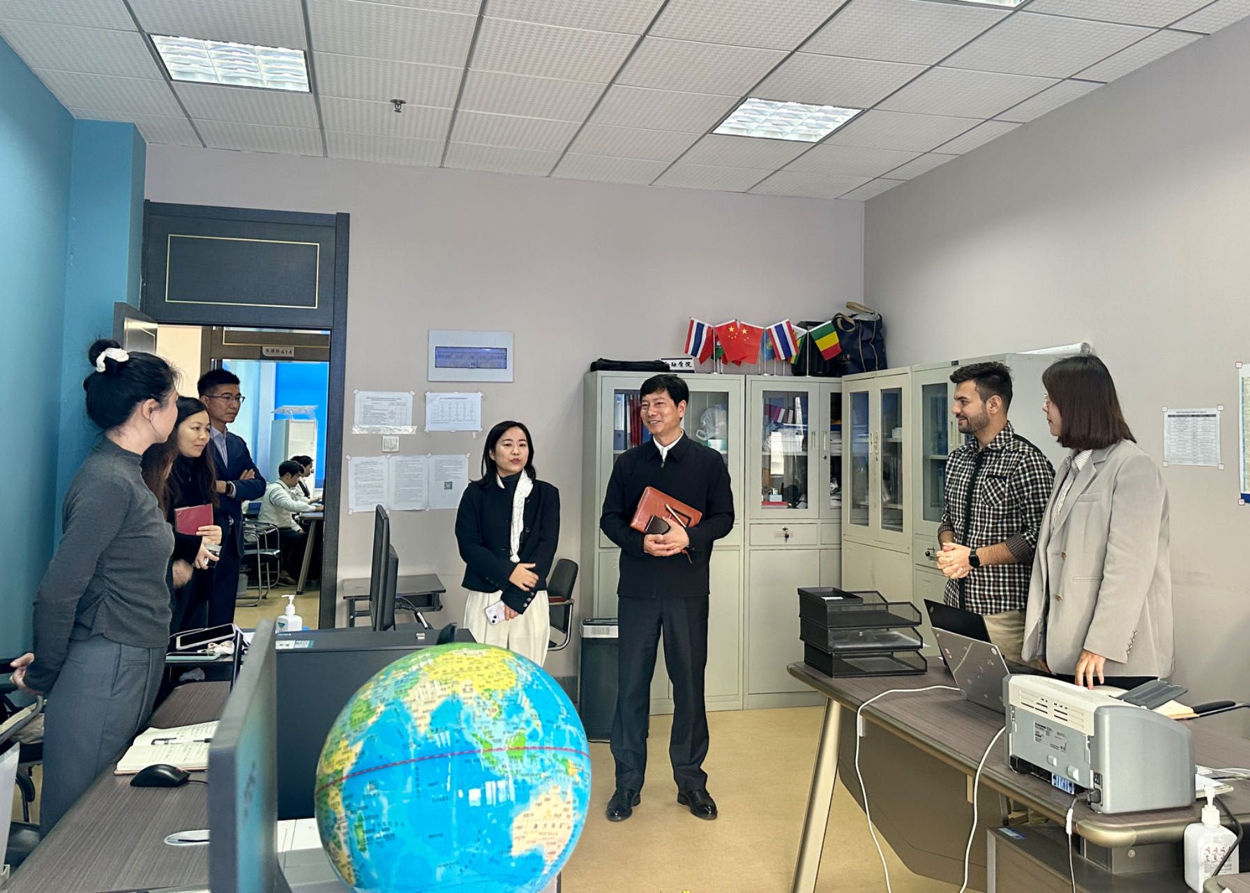 在国际学生管理办公室,朱方伟与我校巴基斯坦籍硕士研究生哈迪(RABBANI ALI HADI)亲切交谈,关心学生中文学习情况,哈迪表示自己作为新生,非常喜欢中国文化,今后会努力学习中文。